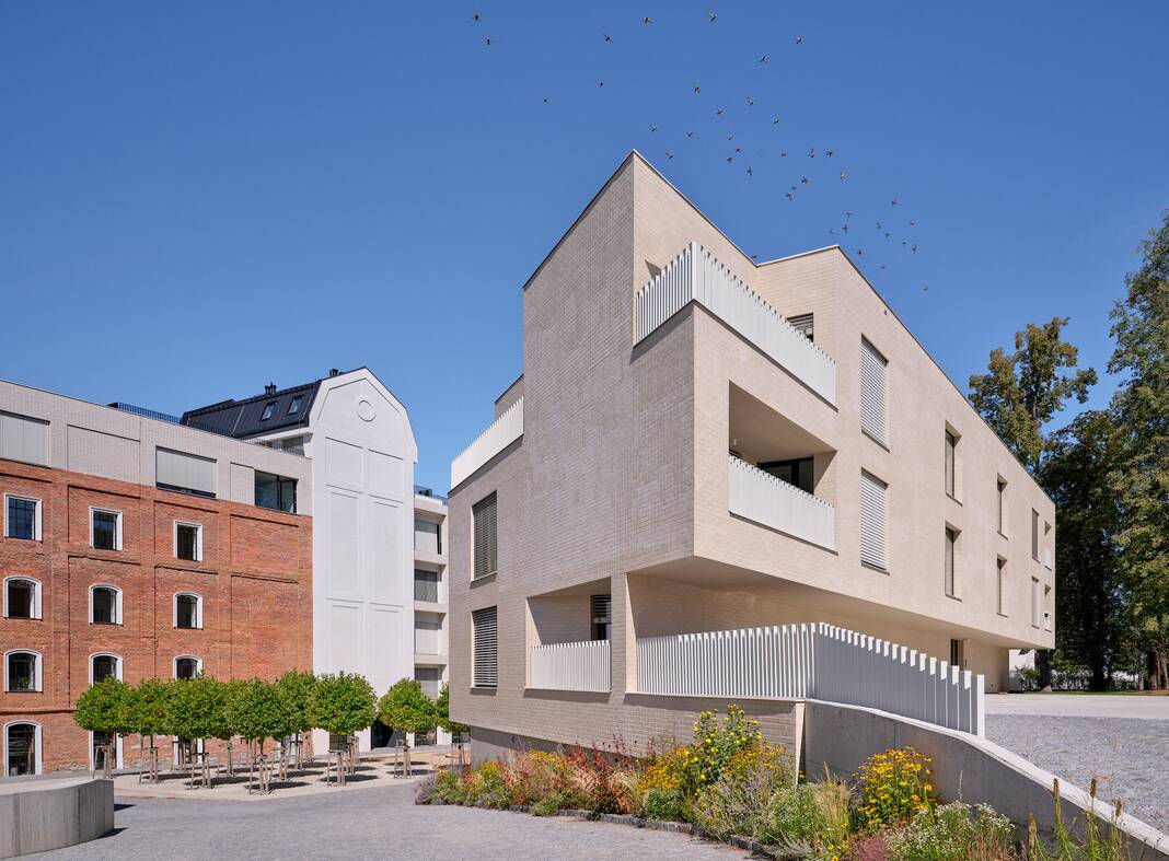 Нові корпуси виконані у сучасній стилістиці, що свідомо відрізняється від історичної частини, аби підкреслити межу між автентичною та новою забудовою. Один із будинків, розташований біля площі, оздоблено світлою цеглою, інший - зведено вздовж річки з великими вікнами.