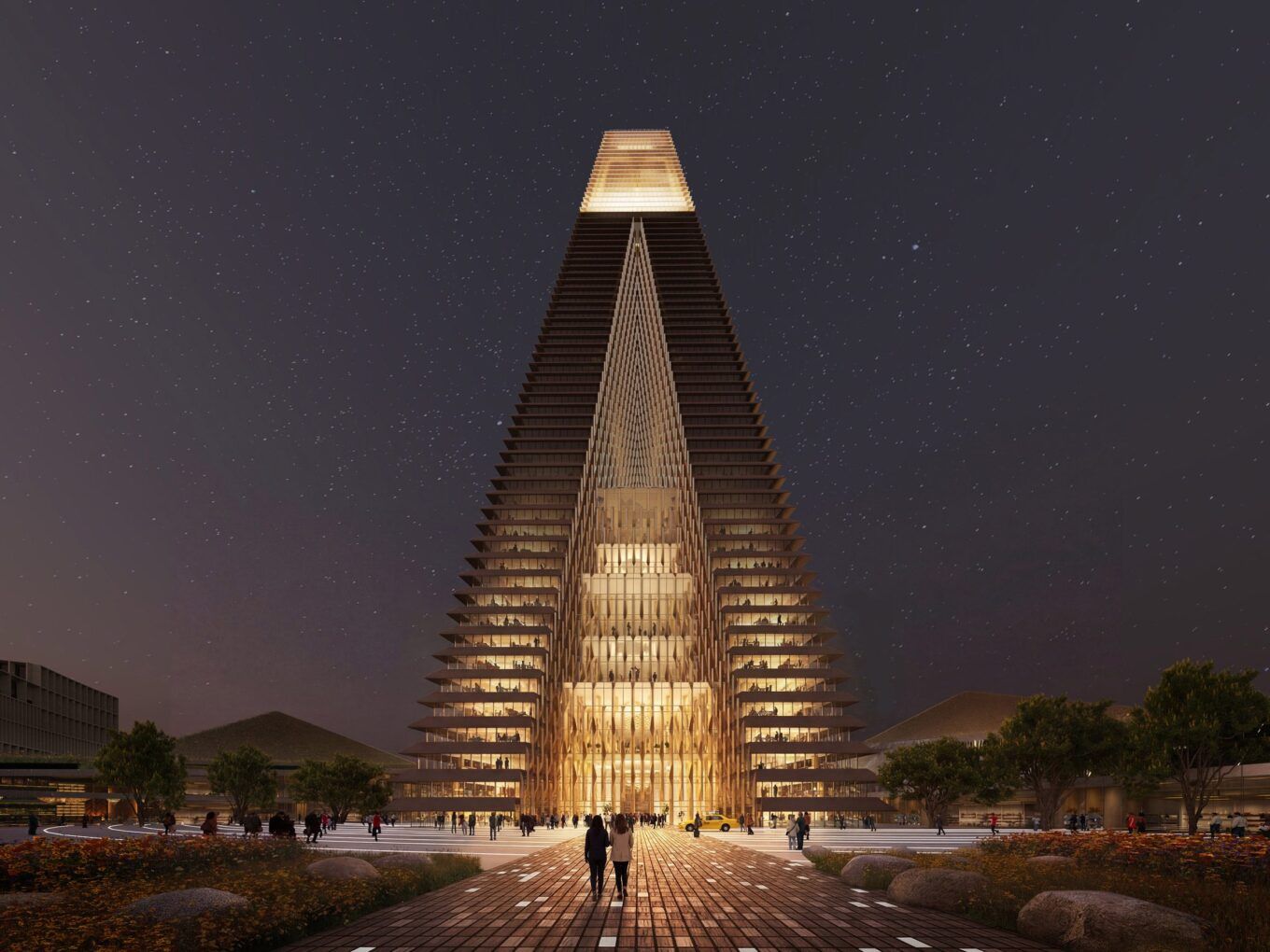 Американська архітектурна студія Skidmore, Owings and Merrill (SOM) представила проєкт двох терасованих клиноподібних веж, які стануть архітектурною домінантою нового міста Алатау на південному сході Казахстану.