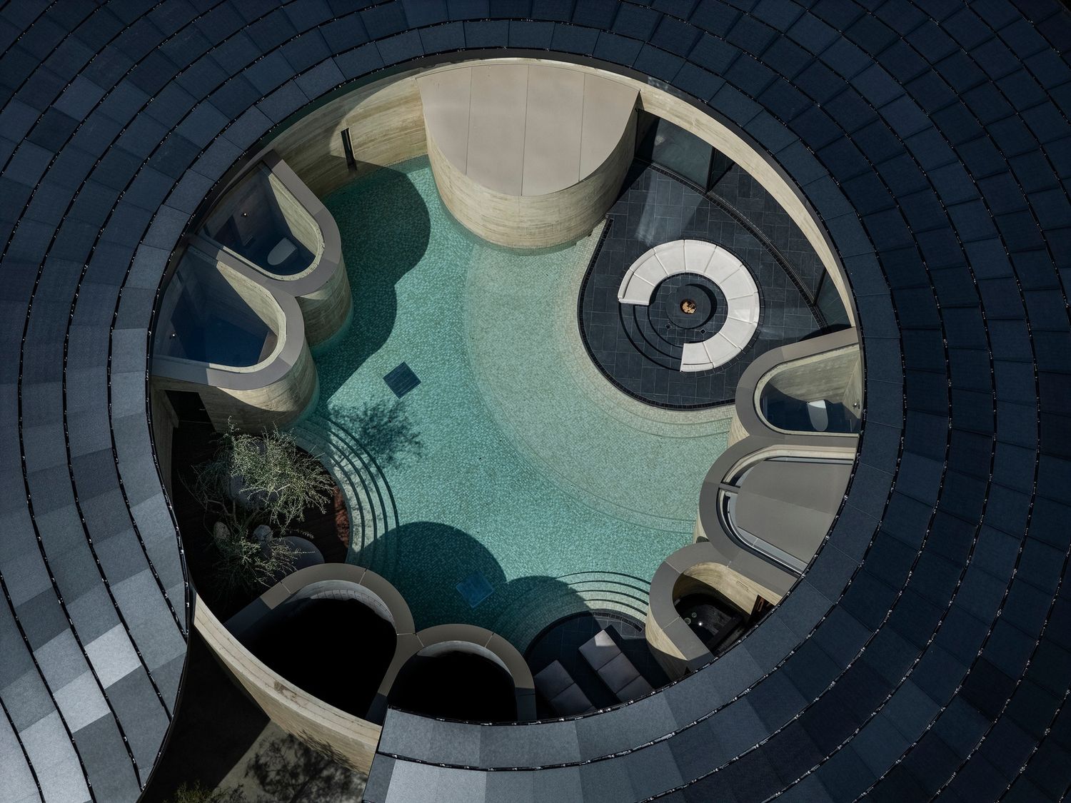 Чотири павільйони комплексу спроєктовані як продовження природного ландшафту. Вони відкривають різні панорами на море - від 90 до 360 градусів. Водночас масивні стіни формують приватні внутрішні простори, відкриті лише до неба.