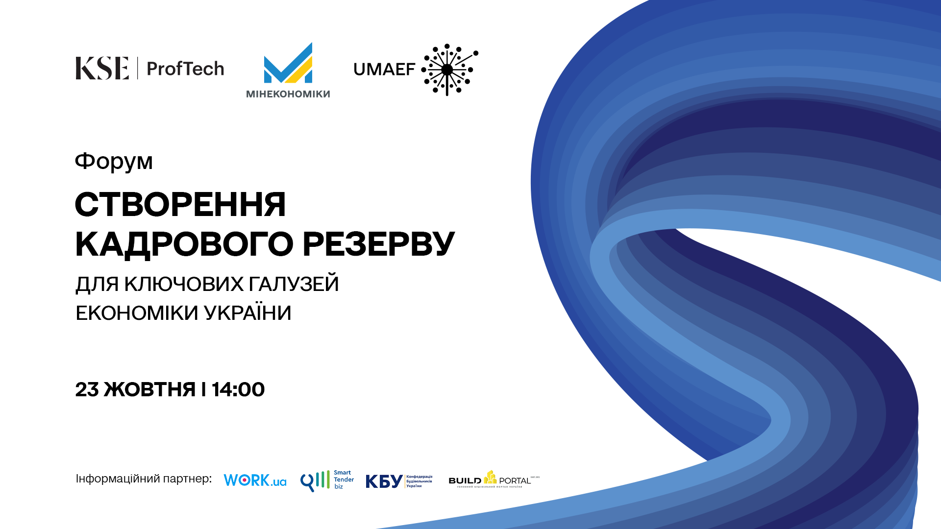 Київська школа економіки (KSE) спільно з Міністерством економіки, довкілля та сільського господарства України запрошують представників громад, бізнесу, освітнього сектору та громадських організацій на форум «Створення кадрового резерву для ключових галузей економіки України»