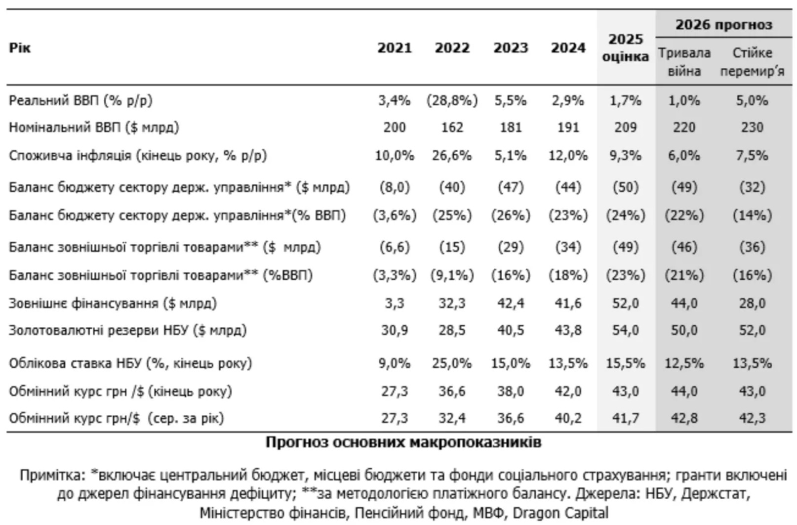 Водночас у Dragon Capital підтвердили минулу оцінку зростання ВВП на 5% рік до року у 2026 році у разі досягнення стійкого перемир’я на початку наступного року.