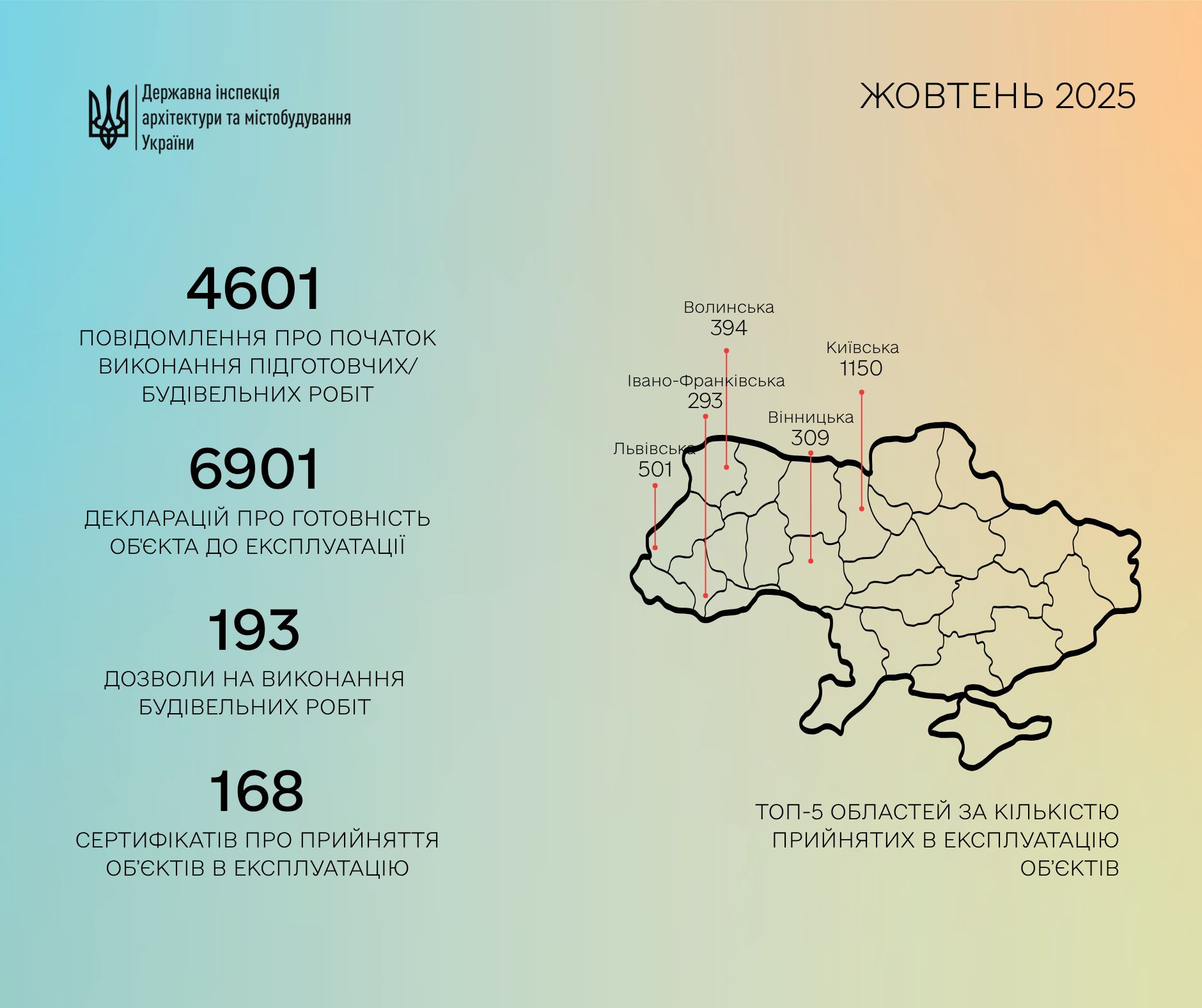 У жовтні 2025 року фахівці ДІАМ опрацювали понад 11 тисяч заявок щодо початку будівельних робіт та прийняття об’єктів в експлуатацію.
