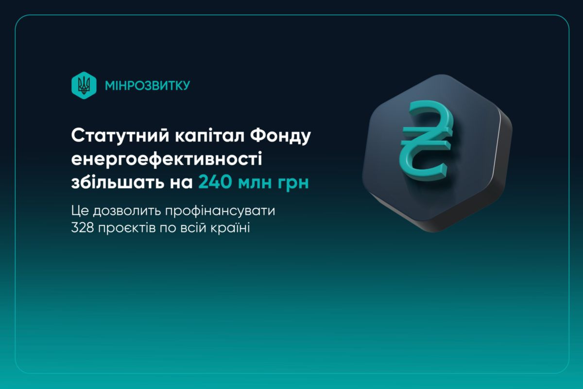 Кабінет Міністрів України ухвалив рішення про збільшення статутного капіталу державної установи Фонд енергоефективності на 240 млн грн. Це передбачено новою бюджетною програмою «Функціонування Фонду енергоефективності» відповідно до змін до Державного бюджету на 2025 рік.