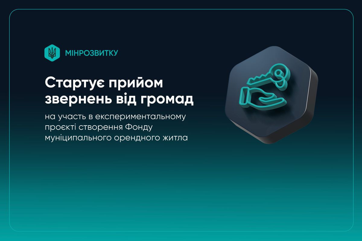 Міністерство розвитку громад та територій України оголошує про початок прийому звернень від територіальних громад на участь в експериментальному проєкті зі створення Фонду муніципального (соціального) орендного житла.