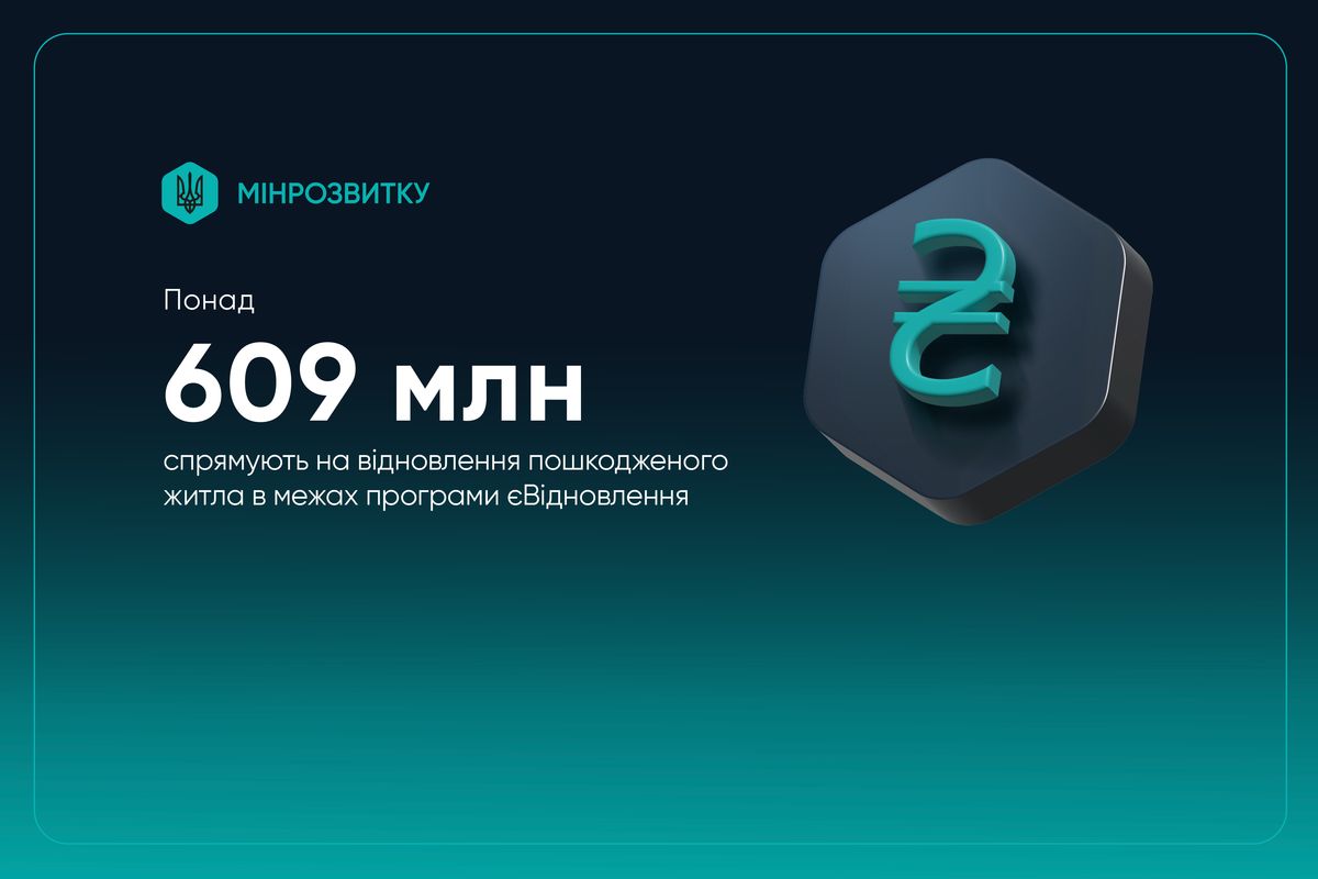 Кабінет Міністрів України підтримав рішення про виділення 609 млн грн для продовження виплат компенсацій за пошкоджені житлові приміщення в межах програми «єВідновлення». Кошти спрямують із Фонду ліквідації наслідків збройної агресії.