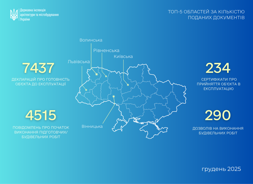 У грудні 2025 року фахівці ДІАМ опрацювали понад 12 тисяч заявок щодо початку виконання будівельних робіт та прийняття об’єктів в експлуатацію