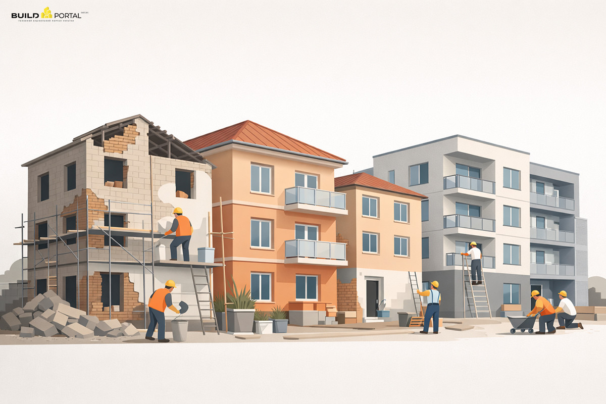 Відбудова охоплює широкий спектр об’єктів - житлові будинки, заклади освіти, медичну інфраструктуру та інші елементи критичної інфраструктури. Роботи виконуються за принципом "краще ніж було", із модернізацією та покращенням функціональних характеристик об’єктів.