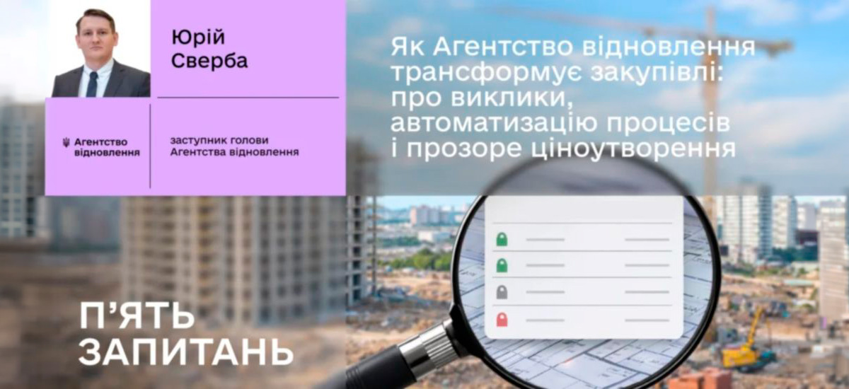 Заступник голови Агентства відновлення Юрій Сверба розповів про реформу закупівель. Основний акцент - прозорість, контроль і підвищення ефективності використання коштів. Читати