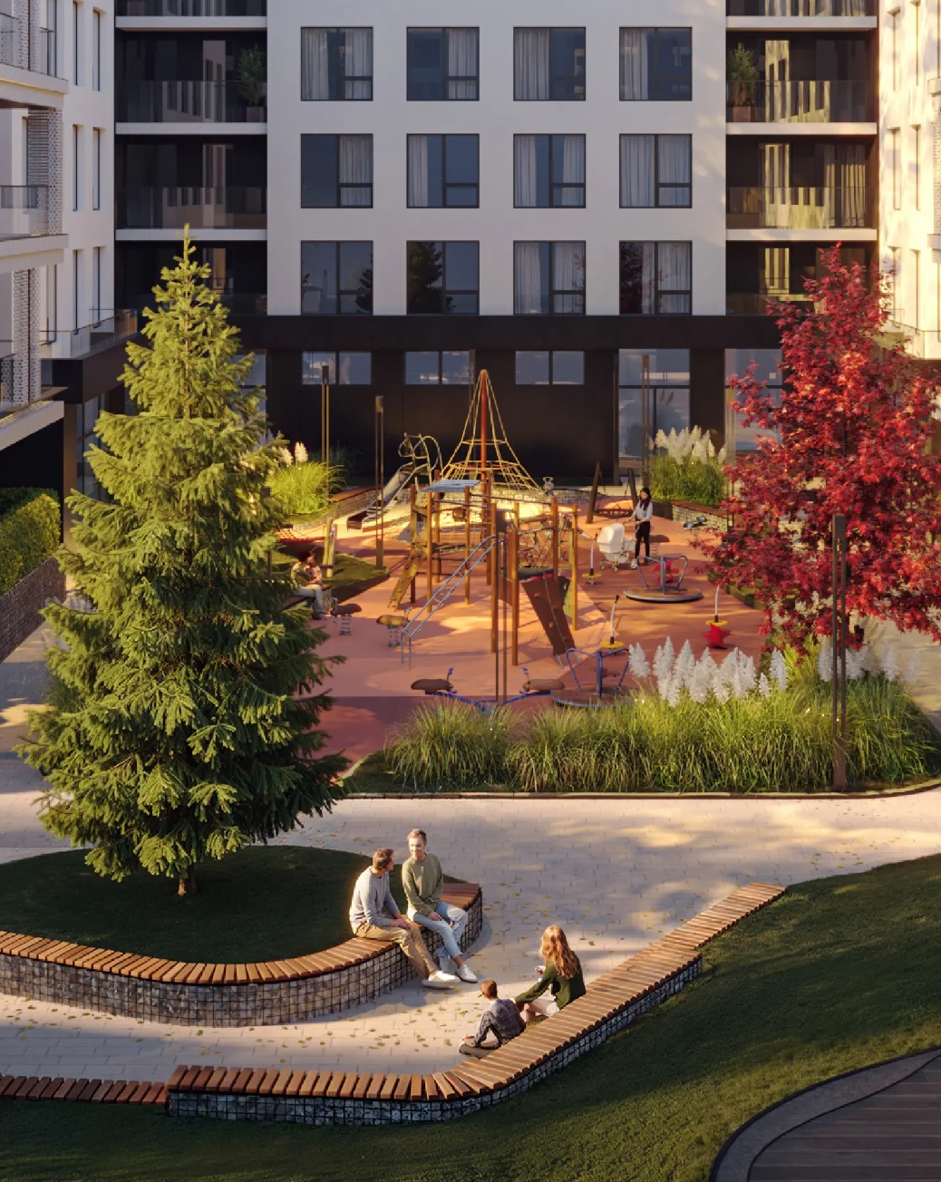 Компанія ставить собі амбітну мету: забезпечити, щоб мешканець міг закрити вісімдесят відсотків своїх щоденних потреб, не виходячи за межі пішої доступності від будинку. Це не декларація — це конкретний чекліст, що перевіряється на етапі вибору локації та проєктування інфраструктури кожного ЖК.