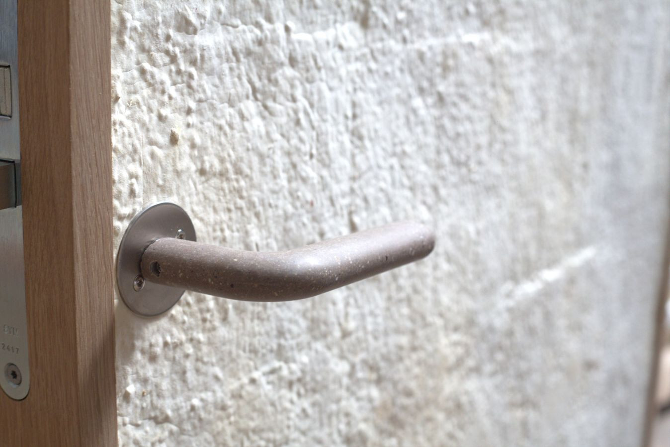 Ручку для дверей створив дизайнер Б’ярне Гаммер для бренду Randi. Вона зроблена з перероблених мушель і має гладку, але тактильну поверхню.